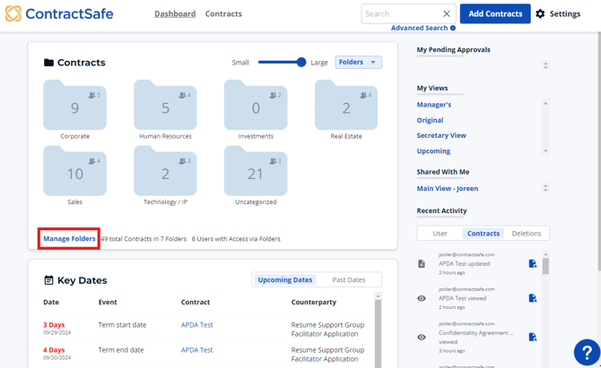 If a subfolder is deleted, its contracts will be moved into the subfolder's parent folder.