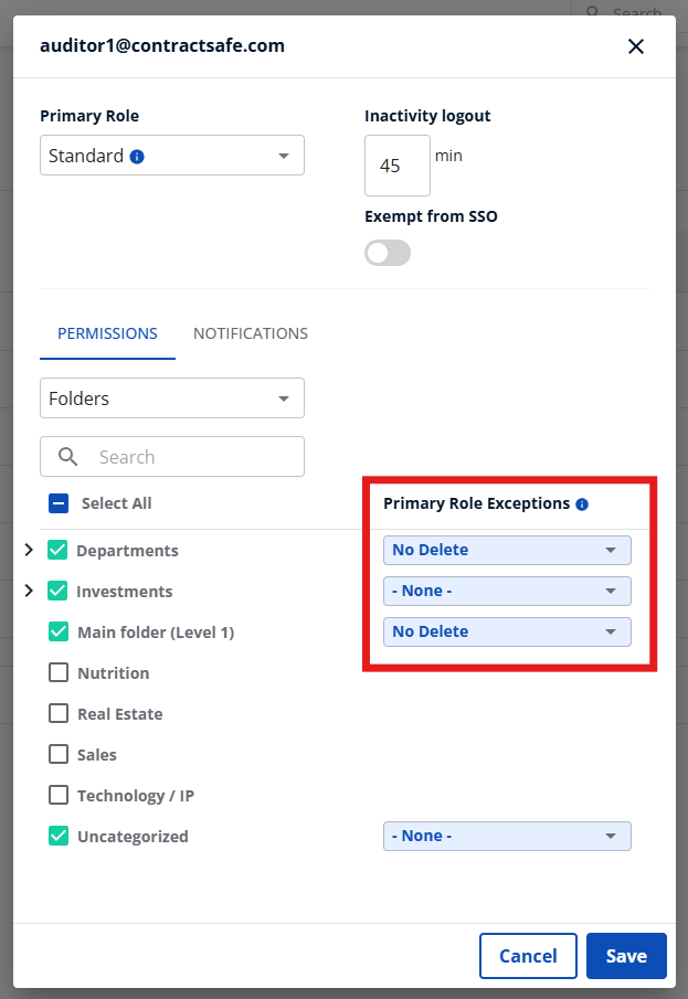Complex Permissions enables you to customize role permissions depending on the folder a contract is in. For example, you can give a user (or group) the role of "Standard" for one folder and "Read Only" for others. This means the user could modify data in the folders where they have a Standard role and would not have that capability in the folders where they have a Read Only role.