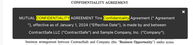 If AI recognizes other options for that field, you'll see an additional option with links directly to the part of the contract where it came from. See an example below: