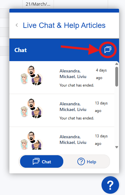 Click on the chat icon indicated above to open up a new chat with us!