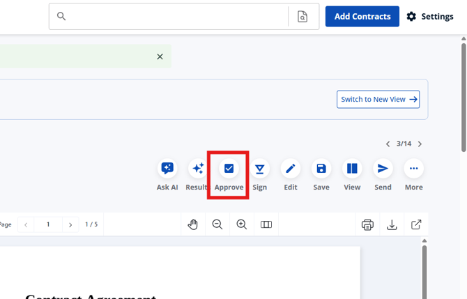 From either place, they'll be taken to the Contract Page, which will now have this notification at the top for Approval: