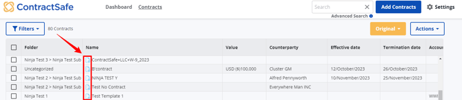Or you can click anywhere on the document line in the Contracts List to open the Contract Page, and the document will be on the right of the screen.