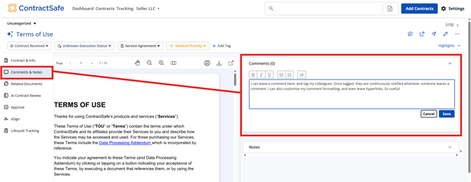 Internal stakeholders with access to the system can view these new versions immediately. They can see the redlines and comments inside the application, or open the file back up into Word to accept/reject changes and reply to comments.