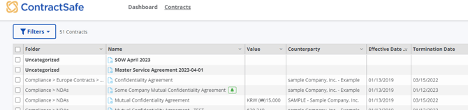 There is the option to create Saved Views to show more or less columns on the Contract List Page. This option is available at the Standard Subscription level and above.