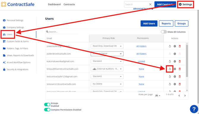 - If you're an Admin-level user, select Settings -> Users.