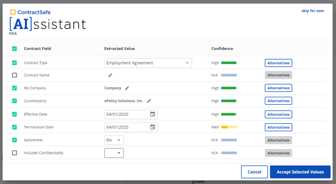 Like the screenshot above, not all contracts will contain all twelve data points. Your results may vary depending on the content of the document.